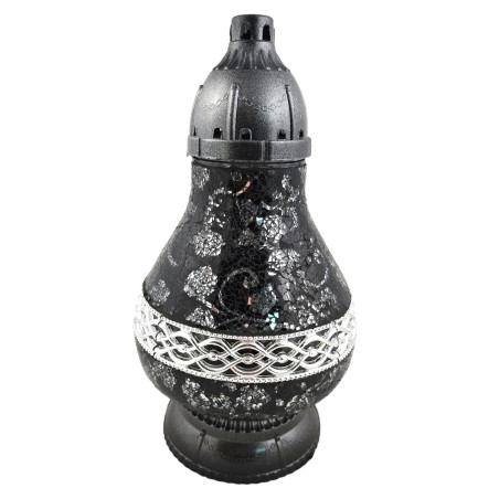 Duży i masywny lampion w stylu mozaikowym. Podstawka i czapka zrobione są z plastiku. Nie zawiera wkładu.